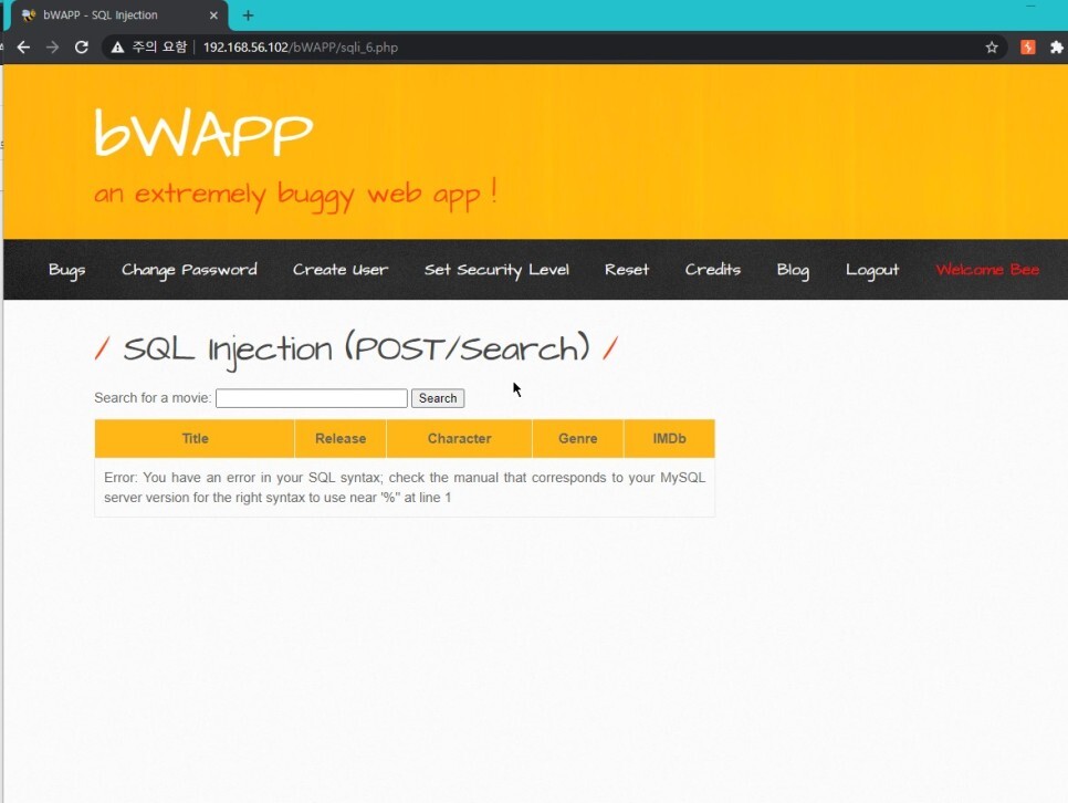 POST 방식을 사용하기 때문에 위 URL 주소창에는 변수가 나타나지 않는 상황이다. 하지만 전문제와 똑같이 ' 를 넣으니 SQL 에러가 나왔다.