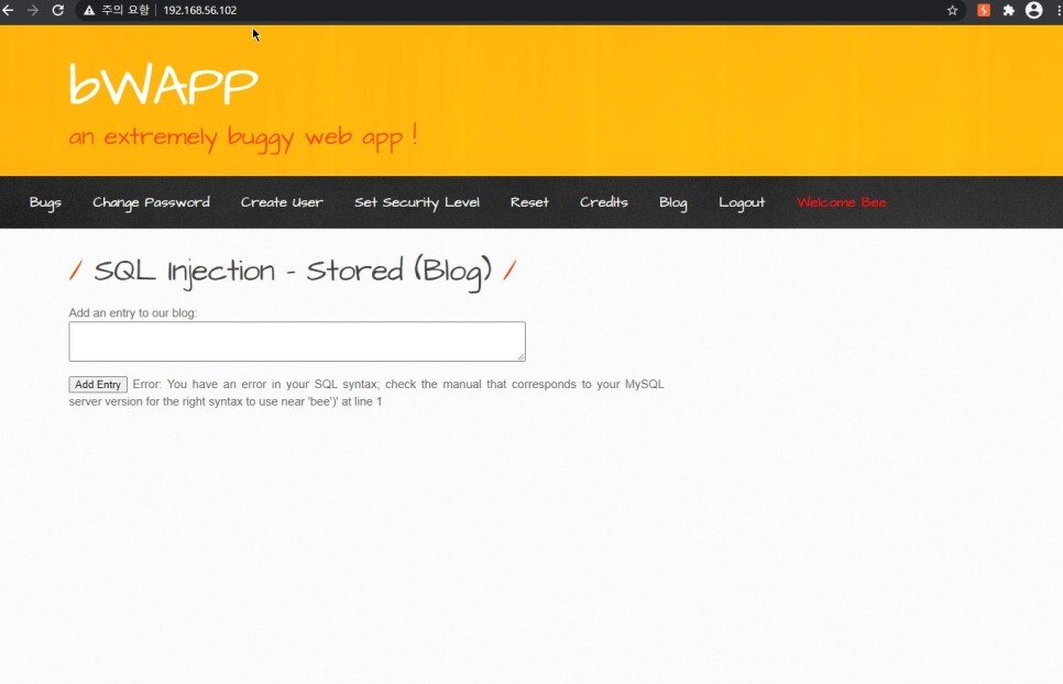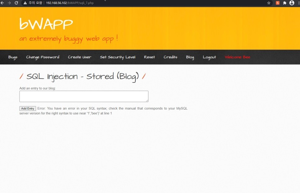 bee는 표에서 가장 왼쪽에 계속 표시되었으므로 이 칸에 SQL 쿼리를 넣는다면 값을 노출시킬 수도 있을것이다.