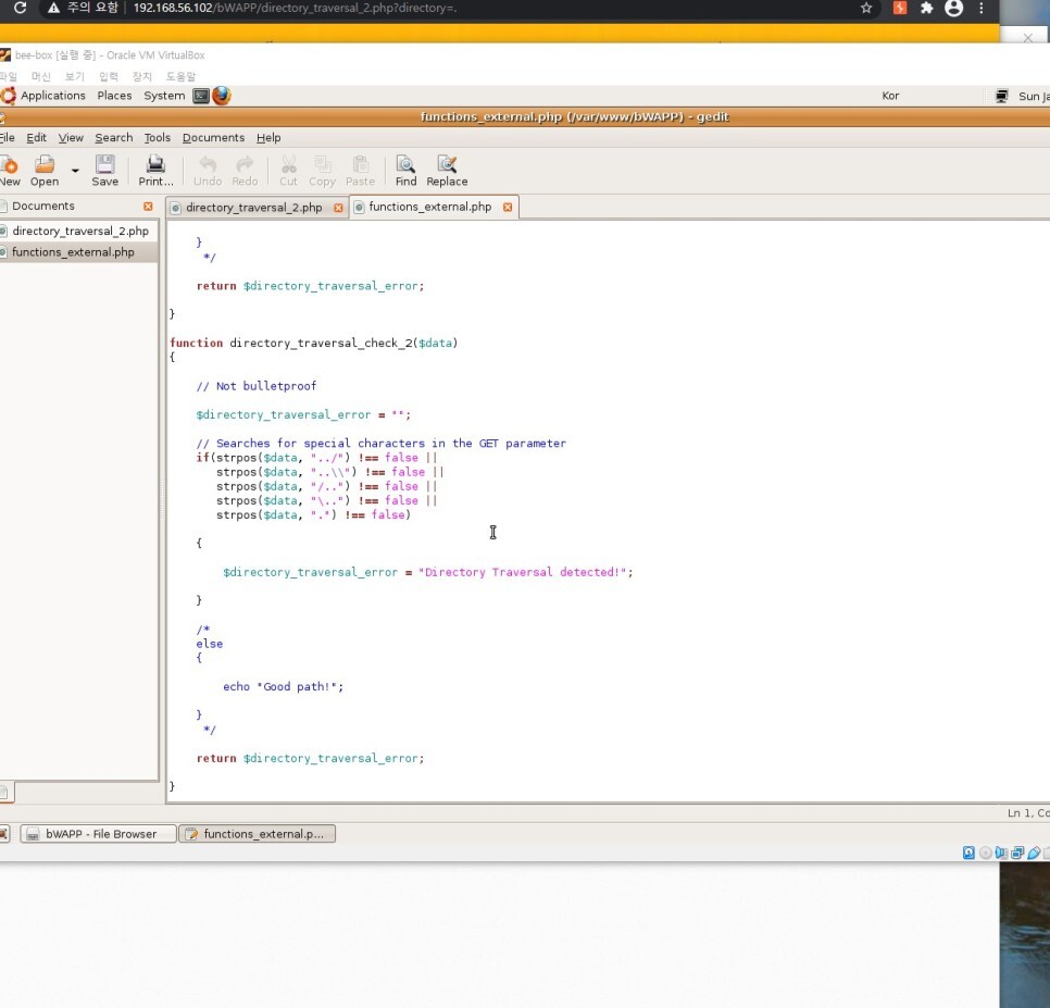 이 함수는 . 특수문자를 필터링 하고 있는 것을 볼 수 있다. 그러기에 상대경로 이동법은 막을 수 있지만 여전히 취약점이 존재하는 상태였다.