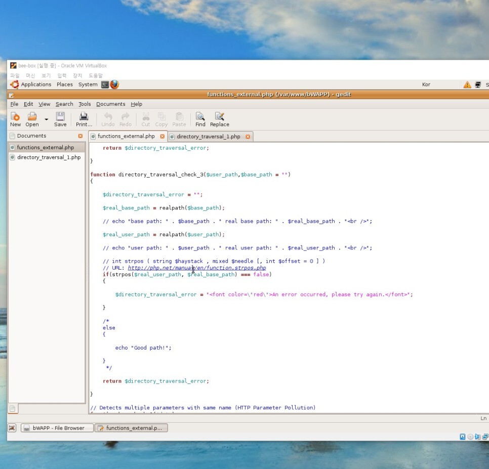 realpath 함수를 호출해서 상대경로를 절대경로로 반환하고 strpos 함수를 통해 기본경로에 사용자가 입력한 경로가 포함되는지 체크한다. 포함되지 않는 경우 올바르지 않은 경로를 요청하기에 오류메시지가 출력된다.
