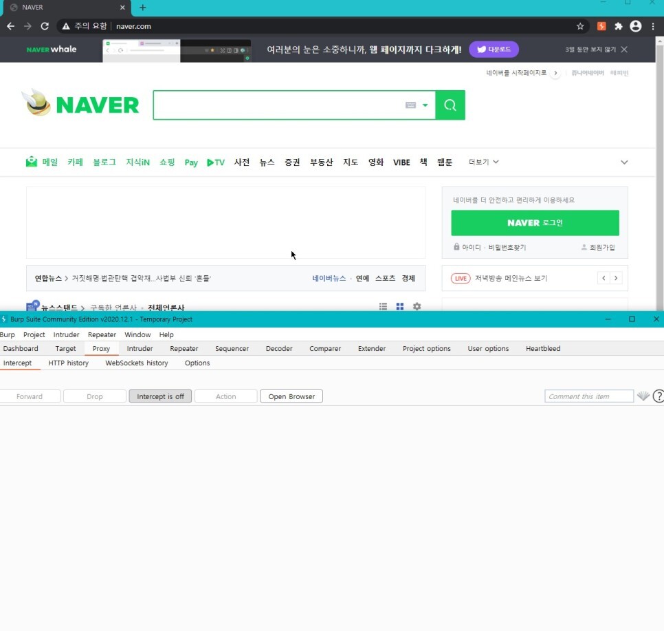 그랬더니 네이버 사이트로 이동한 것을 볼 수 있다.