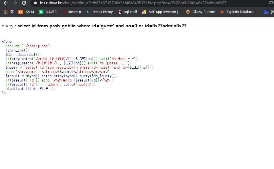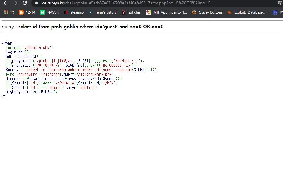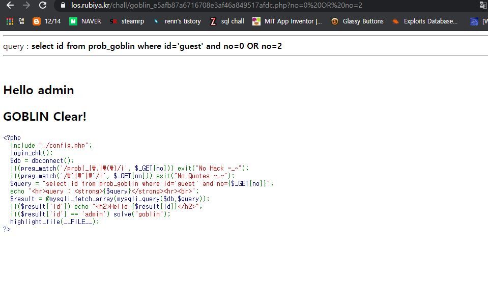 우선 id=admin이 될지 시도해봅니다. and no=0으로 뒤에 구문을 거짓으로 만들면 or 구문에 들어갈 쿼리문을 체크하겠죠
