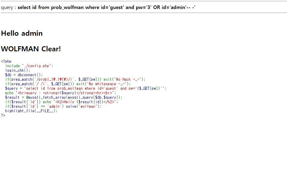 코드를 보니 공백문자를 필터링하는것 같으니 공백문자를 우회해주어야합니다.