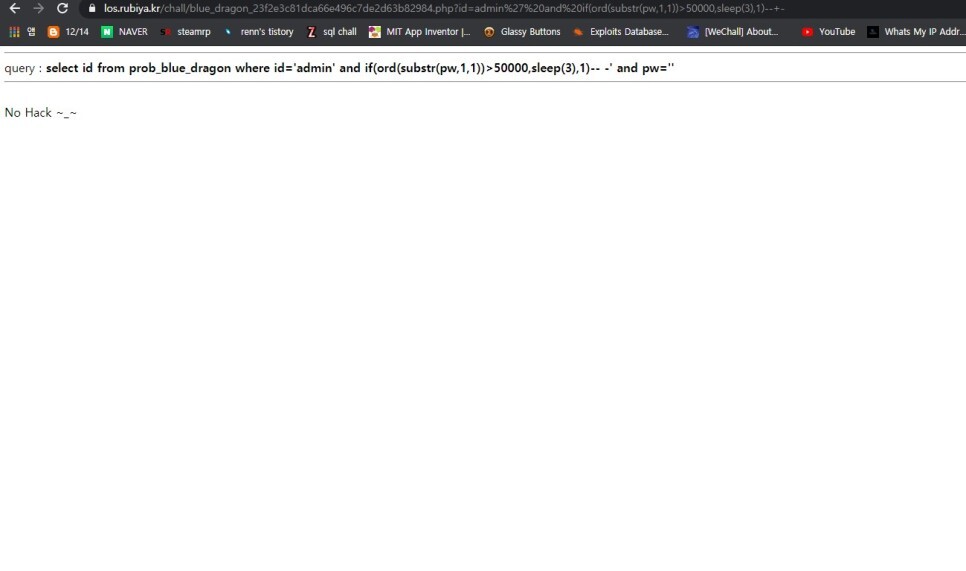 쿼리를 사용했을때 메시지가 뜨지 않아도 sleep() 을 장시간으로 해서 주면 메시지가 뜰때 메시지대신 페이지 로딩 시간이 길어질 것이다.