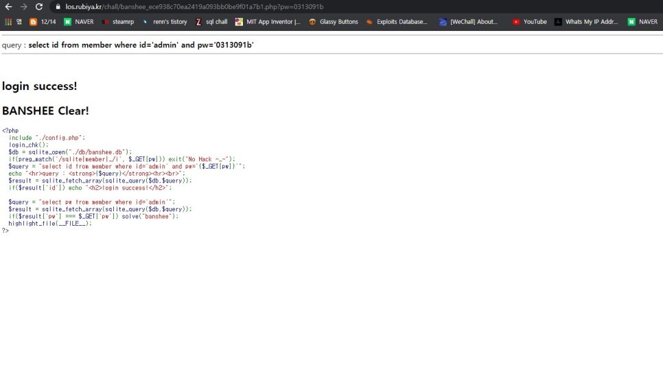 그렇게 알아낸 pw는 0313091b