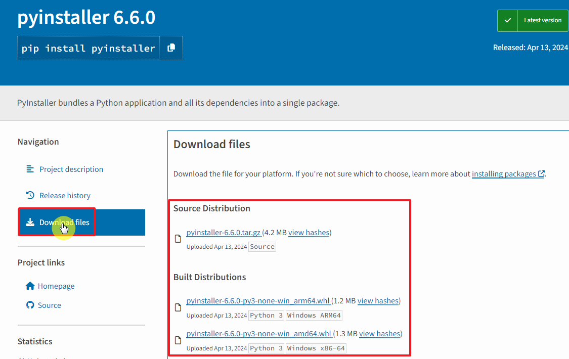 Download Files를 클릭하면 저렇게 tar.gz로 된 파일이나 whl로 된 파일이 존재한다.