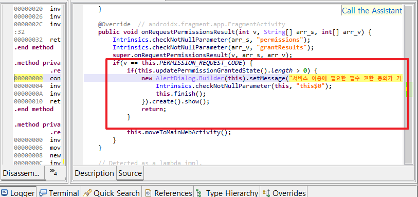 디컴파일을 하고 나면 이제 우회 등 각종 작업을 하기 위해서 앱 내부 소스코드 점검이 본격적으로 필요하다.