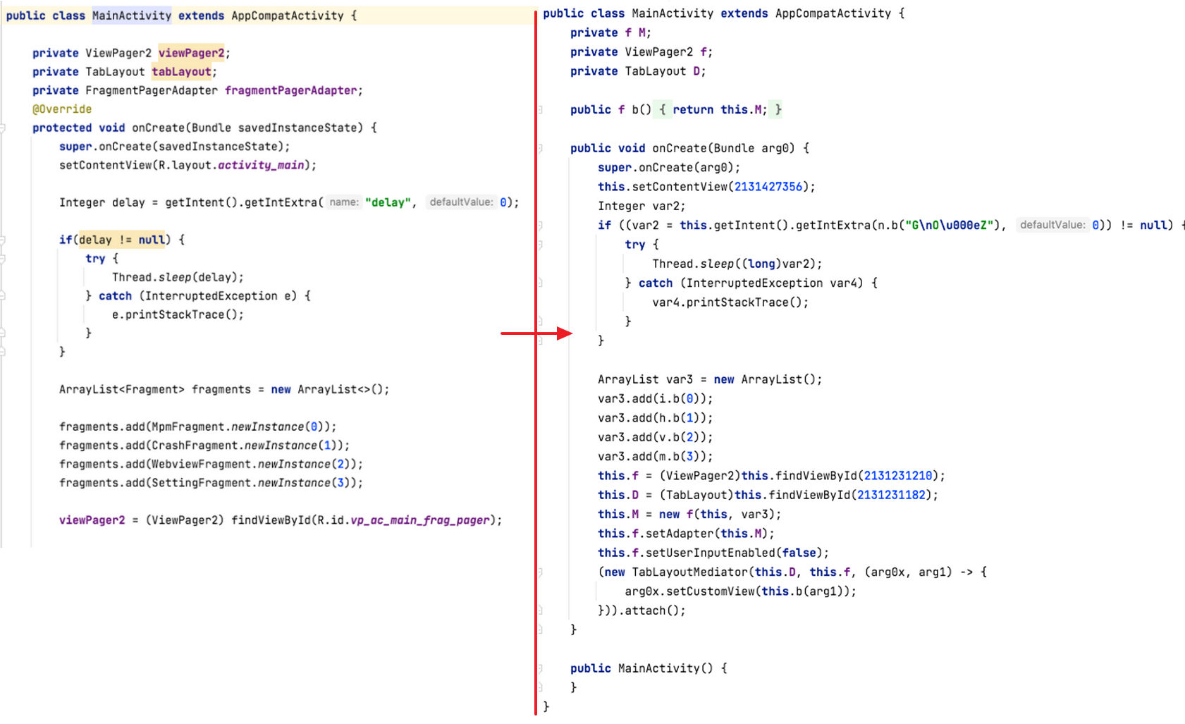 앱을 디컴파일하고 내부 소스코드를 확인한들 해당 코드가 사람이 이해할 수 없는 방식으로 암호화 및 난독화 되어있다면 이러한 작업은 무용지물이다.