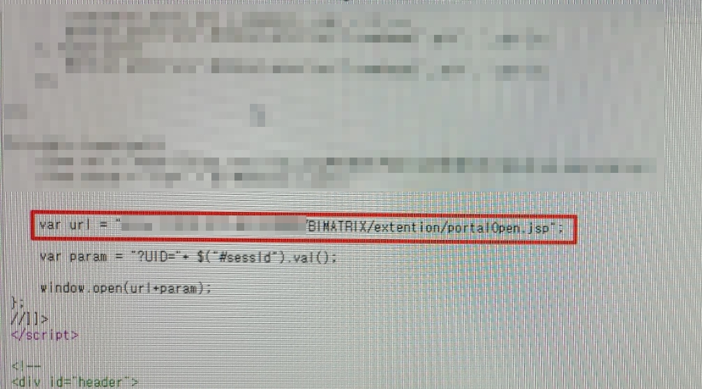 정보 누출 취약점은 소스코드 등 다양한 부분에서 도출될 수 있는데 이번 진단에서 소스코드 내 노출된 내부 솔루션 페이지 URL을 발견할 수 있었다.