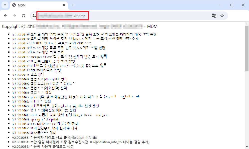 이렇게 URL 자원을 요청한 결과 예상과 다르게 MDM과 관련된 개발 과정 코멘트가 담긴 샘플 페이지를 확인할 수 있었다.
